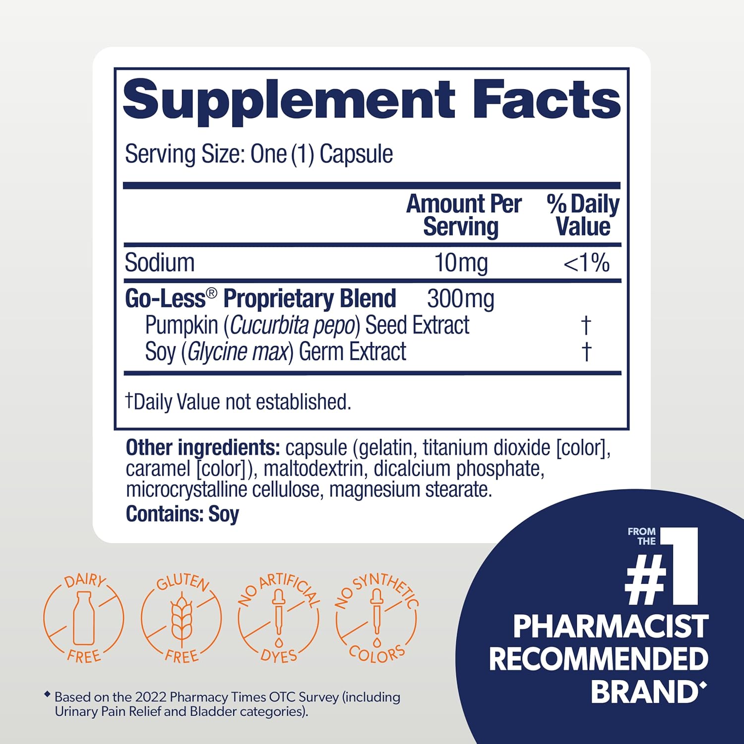 - GO LESS This safe, drug-free supplement contains a naturally sourced blend that supports bladder strength and helps reduce the urge to go, day and night.* Healthy bladder control helps manage those frustrating nighttime visits to the bathroom