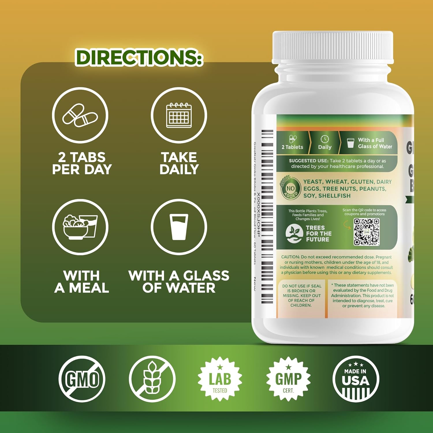 - CONVENIENT BRAIN HEALTH SUPPORT – Designed for health-conscious individuals, our brain health supplements for adults deliver a potent dose of Ginkgo Biloba and Panax Ginseng in just two daily vegan tablets, supporting both your brain and body for holistic wellness.